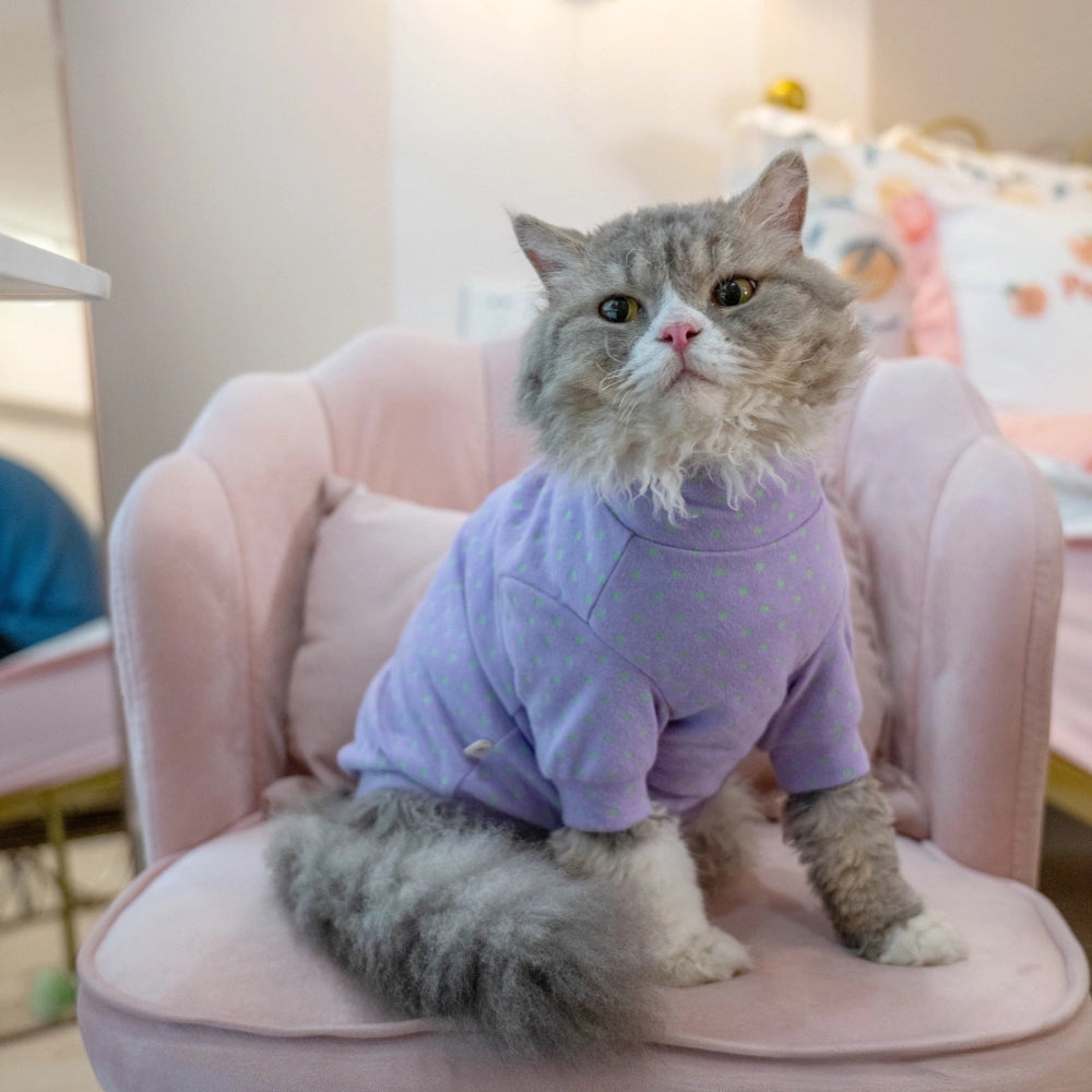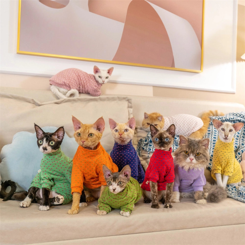 Ultra-soft dual-sided cotton undershirt in vivid candy colors – designed for hairless and fine-coat cats who need breathable, comfortable, anti-static warmth.
