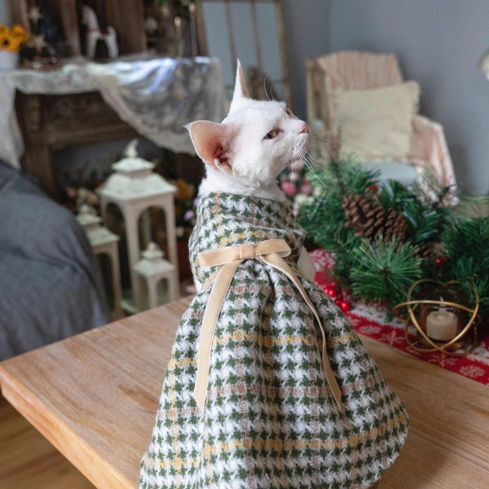 Classic British-style plaid & stripe blend with a cozy cotton lining—designed for hairless and fine-coat cats who need breathable warmth and all-day comfort.