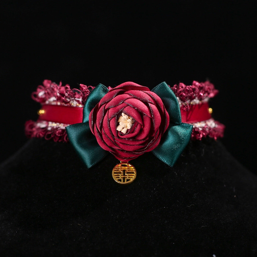 Original handmade cat collar — red lace the perfect Christmas photo gift for your cats.