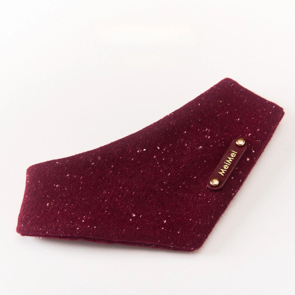 Wine-red knitted wool sprinkled with delicate snowflakes — a cozy, winter-born bandana made for warmth and comfort.